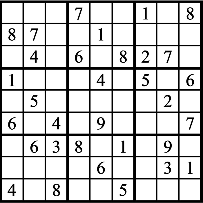 Challenge yourself with Janric's Classic Sudoku puzzle! Insert numbers 1 - 9 in each box with every row, column and 3x3 box containing the digits just once.